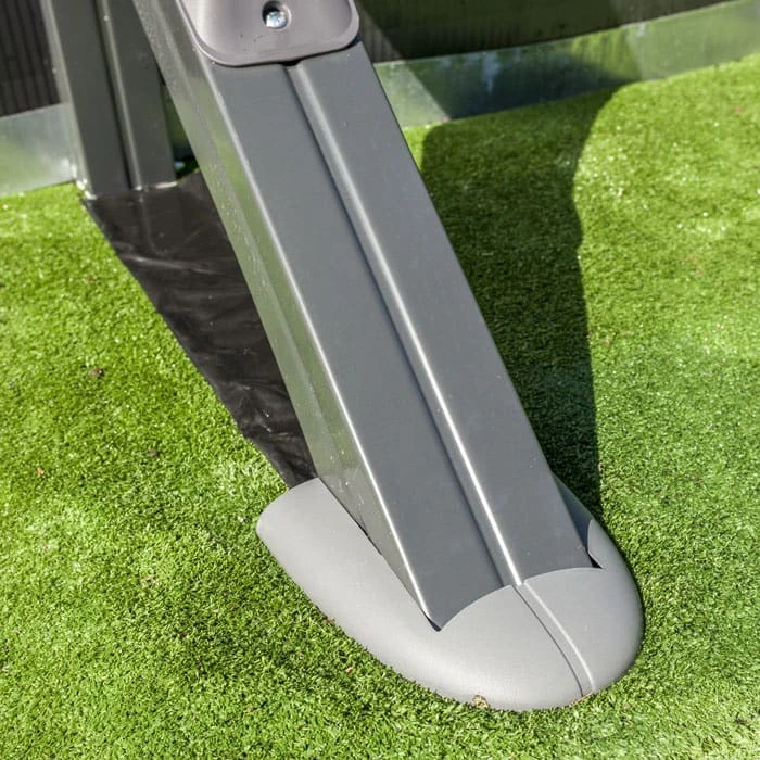 Sa structure en acier galvanisĂ© de 45/100ème assurera une soliditĂ© Ă toute Ă©preuve et contribuera Ă sa grande durabilitĂ©. Pour amĂ©liorer la stabilitĂ© du bassin, 2 renforts en acier sont prĂ©sents de chaque cĂ´tĂ© de la piscine. Ainsi, n’ayez crainte, mĂŞme rempli, le bassin ne bougera plus. Sa couleur gris anthracite donne un aspect moderne au bassin et se font dans tous les jardins.