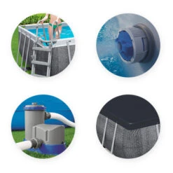 La piscine Bestway Power Steel Frame 4,88 x 3,05 x 1 m est livrĂ©e avec le matĂ©riel adĂ©quat de filtration. Un Ă©purateur Ă cartouche 3m3/h ainsi qu’une cartouche type II sont inclus. Ce système correspond parfaitement au volume d’eau de la piscine.