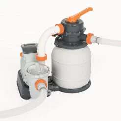 Bestway a pensĂ© Ă tout : ce kit est composĂ© d’une pompe de filtration (dĂ©bit de 5,678 mÂł/h) Ă sable qui assurera l’Ă©puration de l’eau de votre piscine et lui apportera clartĂ© et propretĂ©.