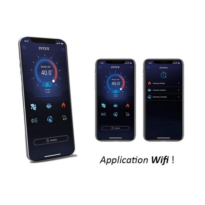 Aujourd’hui, un pas encore plus grand dans la gestion du spa Ă distance a Ă©tĂ© fait. Controllez dĂšs maintenant votre Pure Spa Intex avec votre smartphone. GrĂące Ă l’application « Intex Link – Spa Management » vous pourrez programmer le chauffage, la filtration ou encore la stĂ©rilisation de votre spa Ă distance oĂč que vous soyez. Pour celĂ , voici la marche Ă suivre :